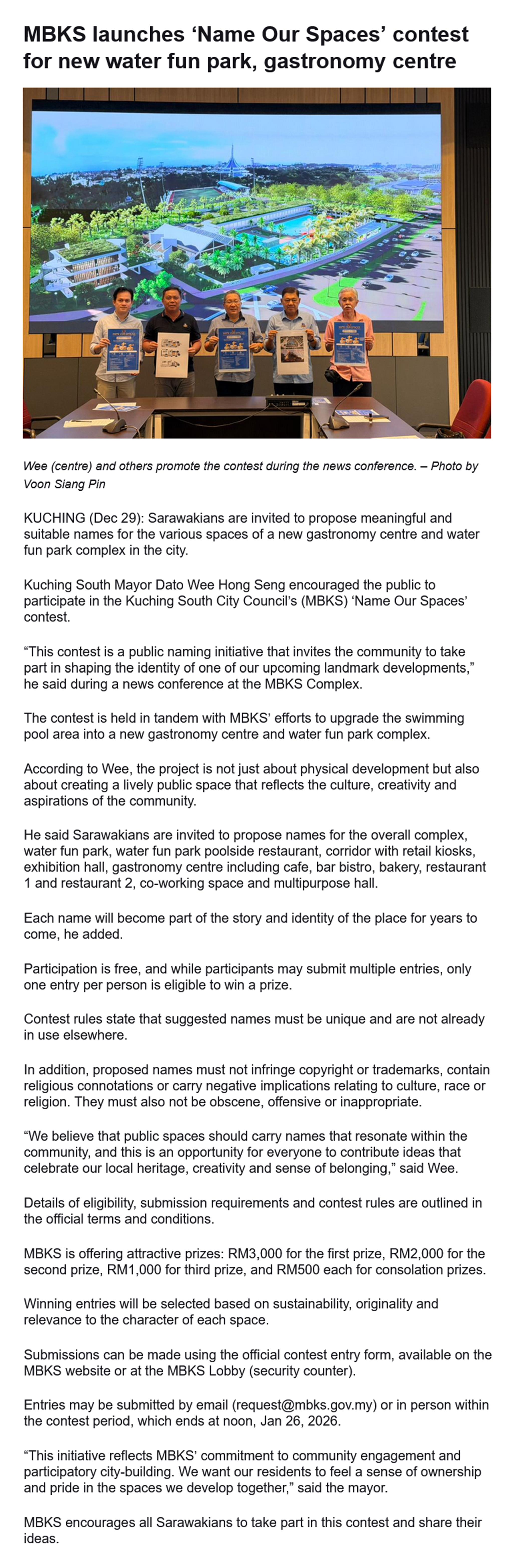 MBKS launches ‘Name Our Spaces’ contest for new water fun park, gastronomy centre