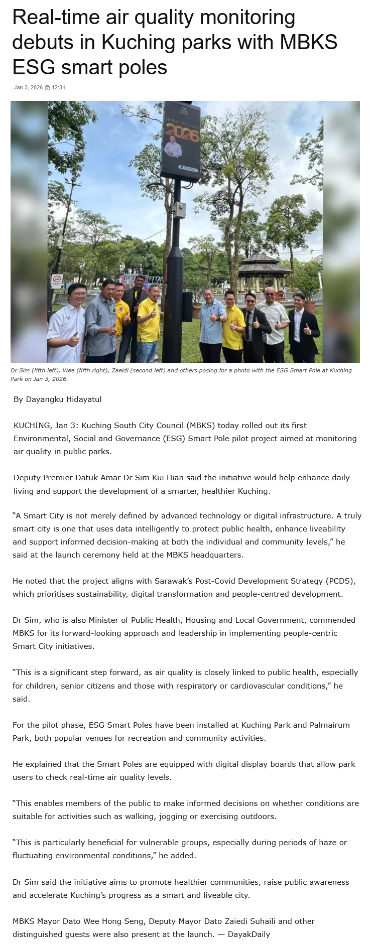 Source of News: https://dayakdaily.com/real-time-air-quality-monitoring-debuts-in-kuching-parks-with-mbks-esg-smart-poles/