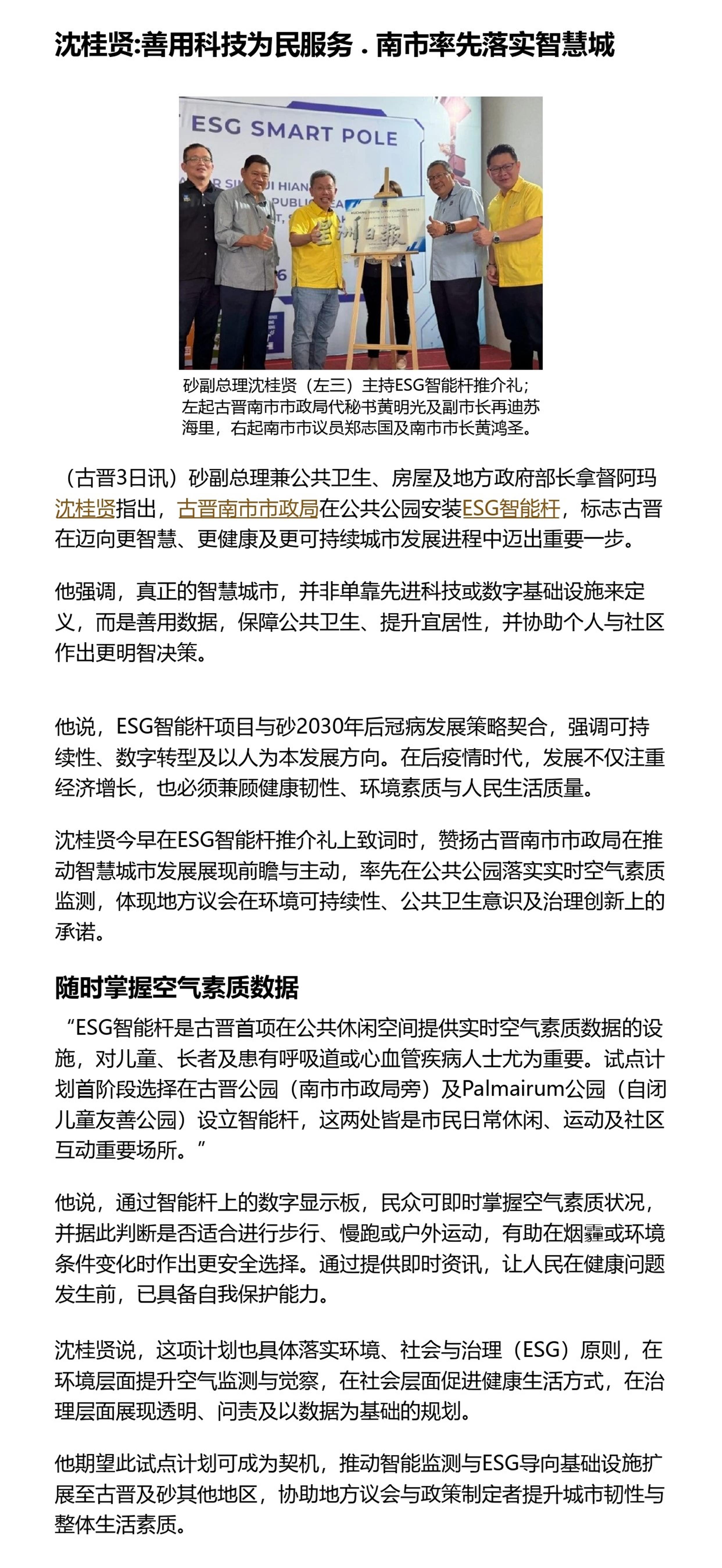 沈桂贤:善用科技为民服务 . 南市率先落实智慧城