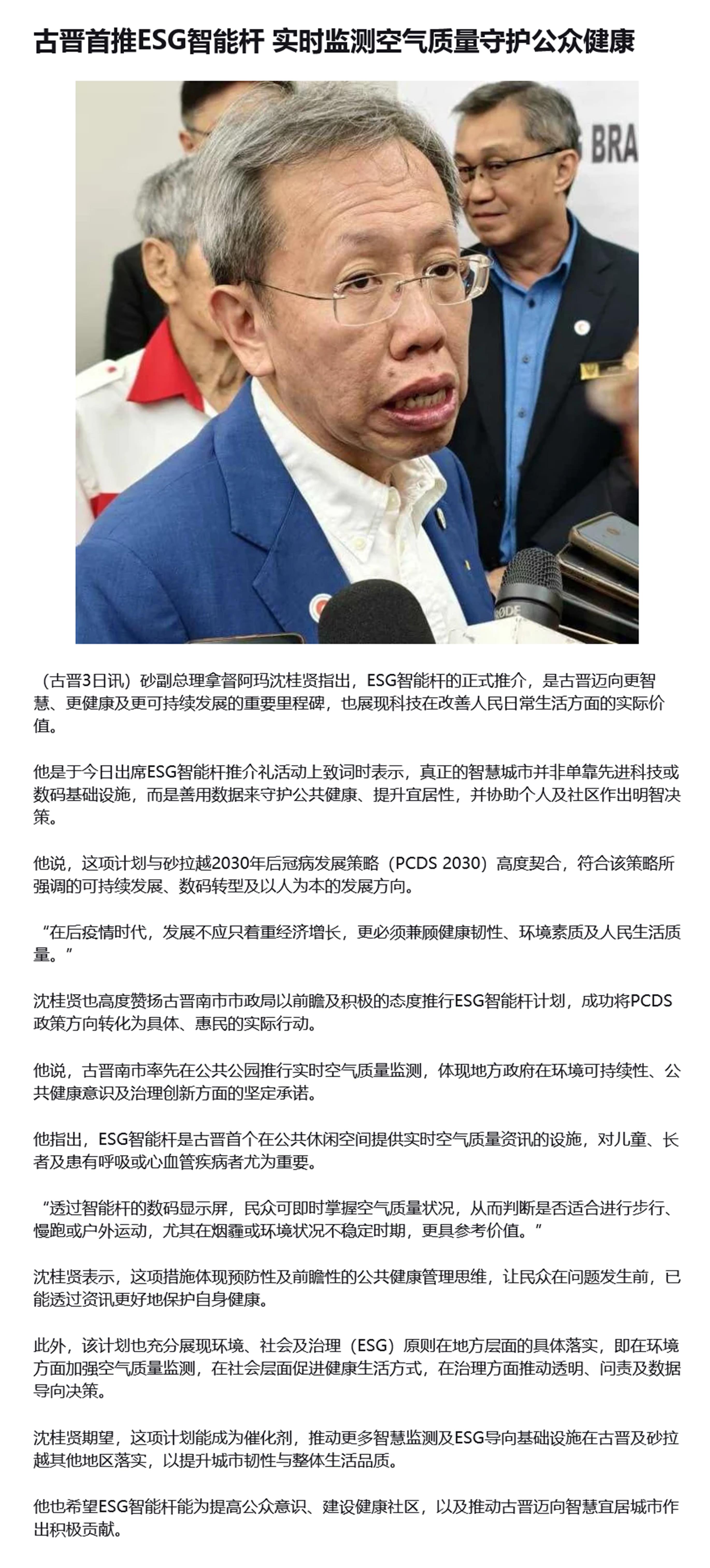 古晋首推ESG智能杆 实时监测空气质量守护公众健康
