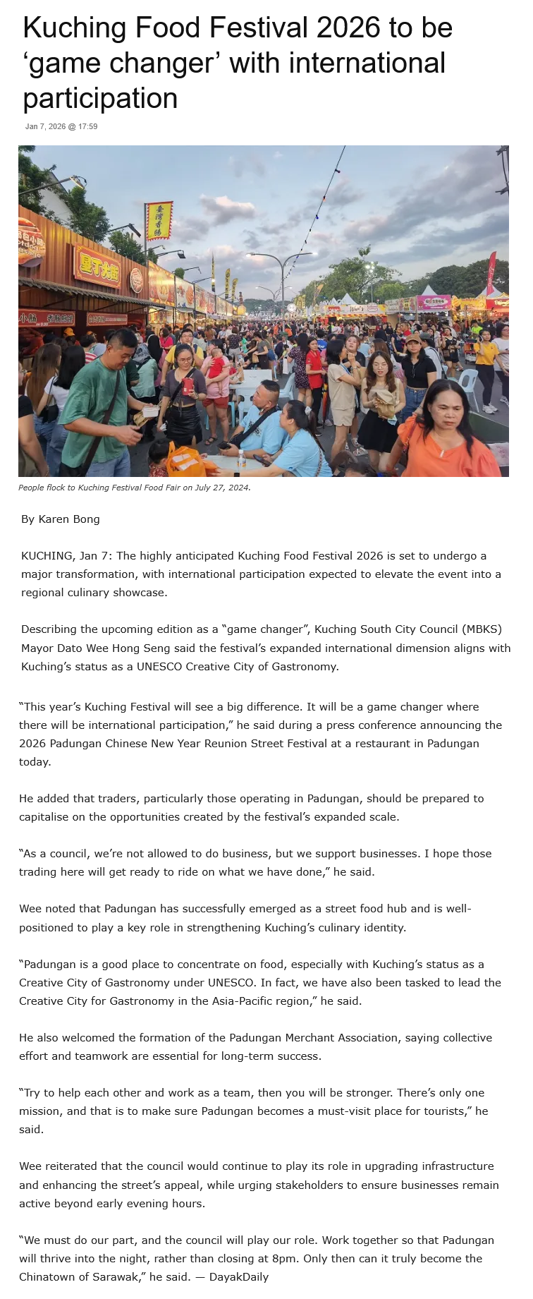 Source of News: https://dayakdaily.com/kuching-food-festival-2026-to-be-game-changer-with-international-participation/