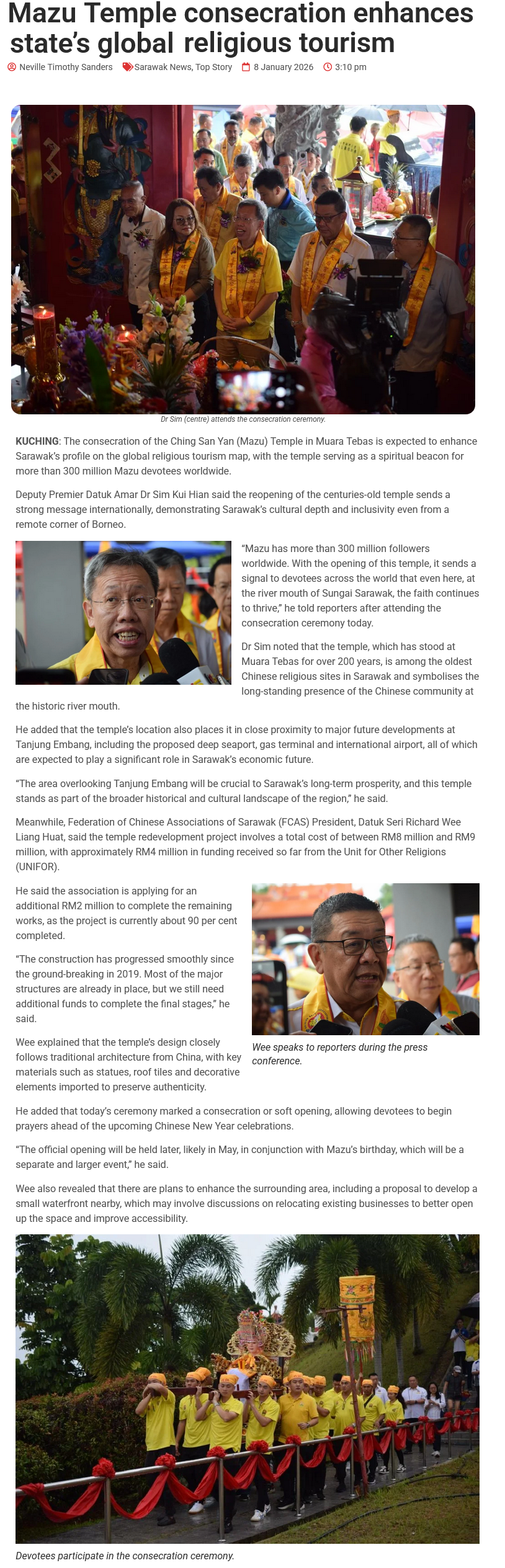 Source of News: https://www.sarawaktribune.com/mazu-temple-consecration-enhances-states-global-religious-tourism/