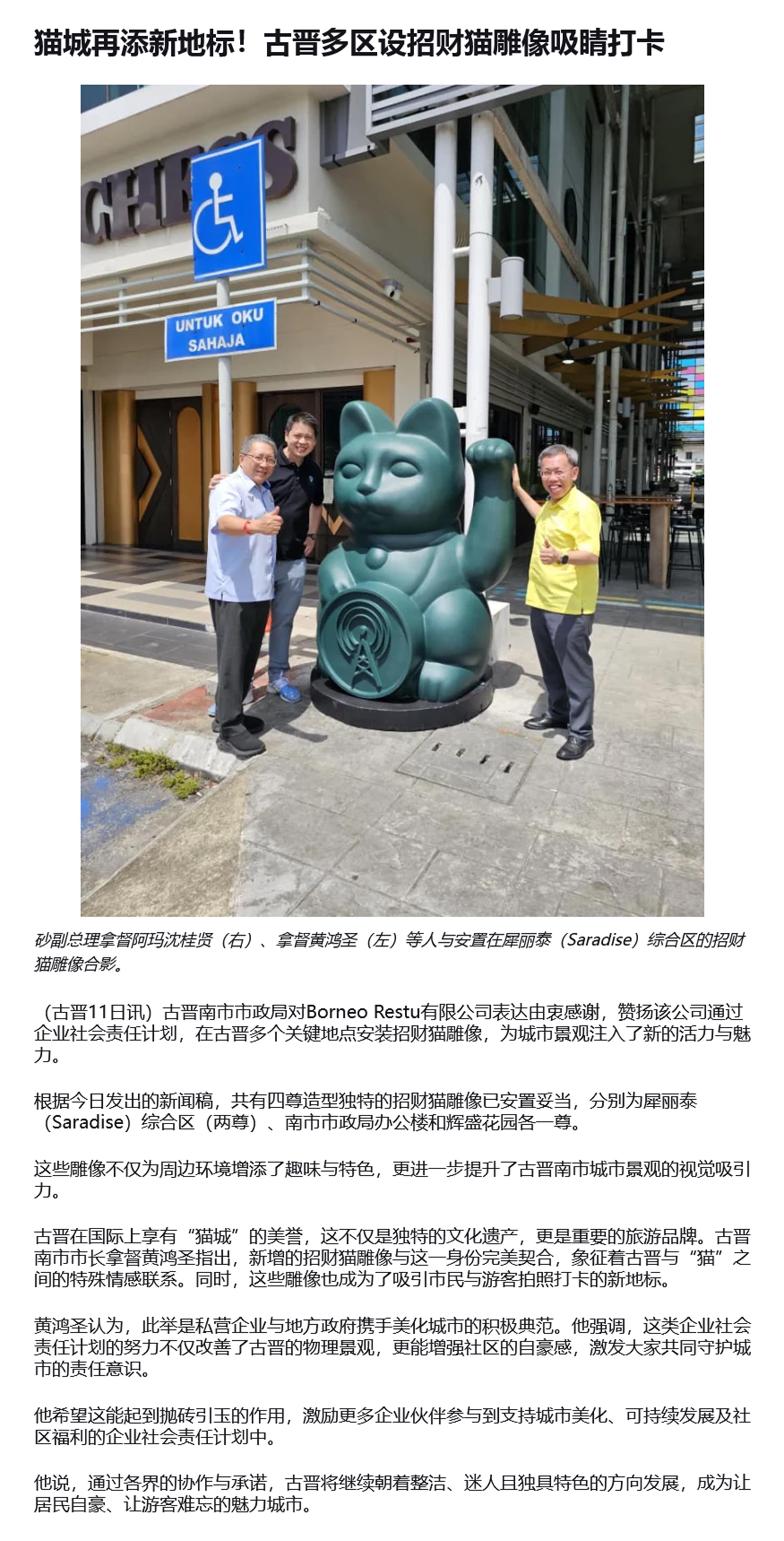 猫城再添新地标!古晋多区设招财猫雕像吸睛打卡