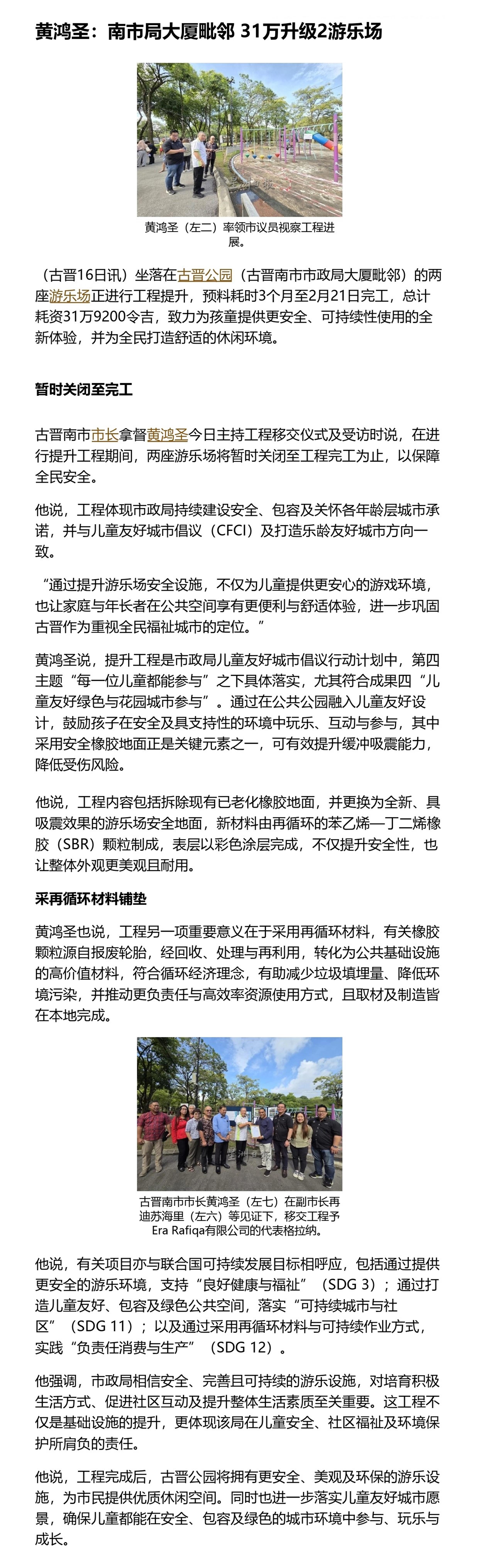 黄鸿圣:南市局大厦毗邻 31万升级2游乐场