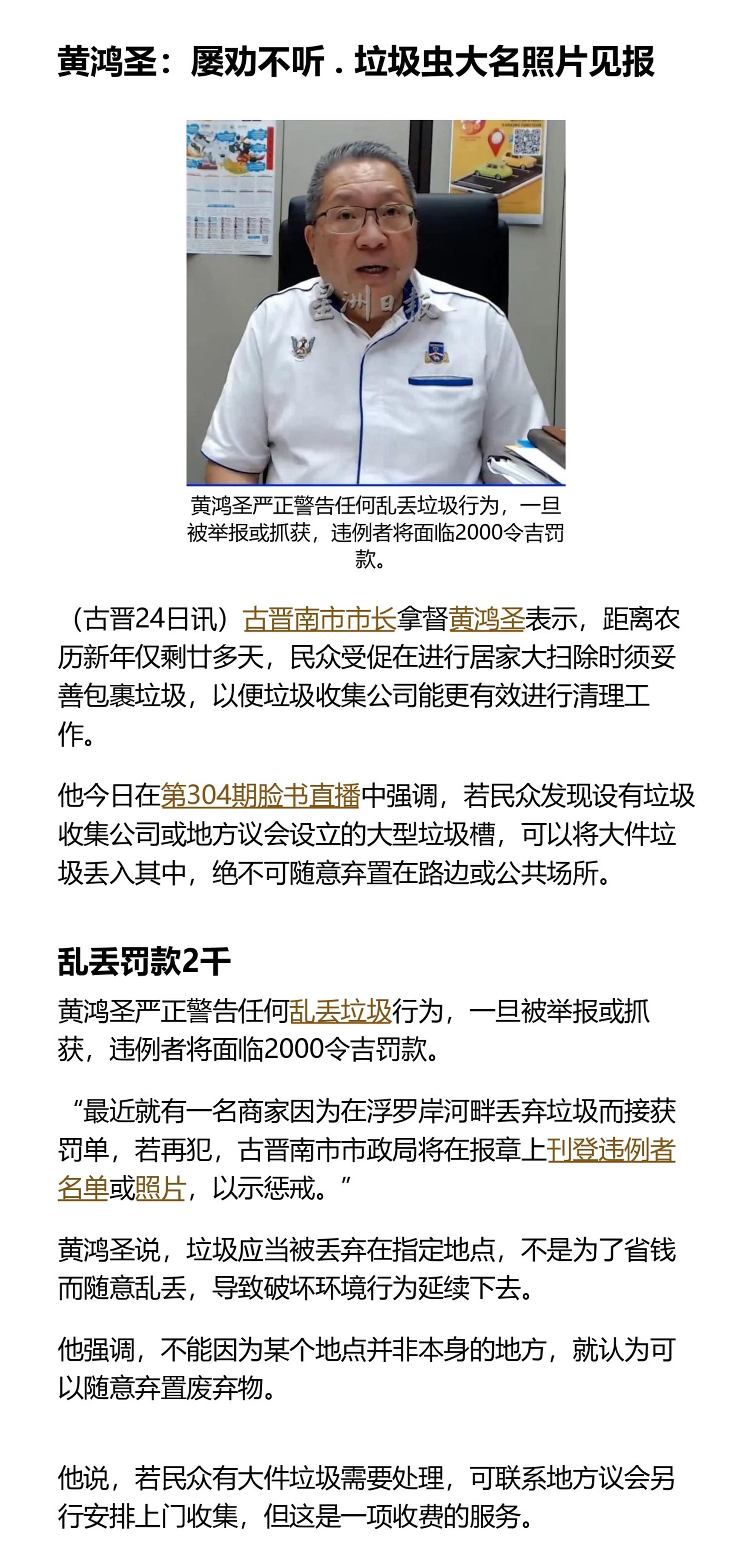 黄鸿圣:屡劝不听 . 垃圾虫大名照片见报