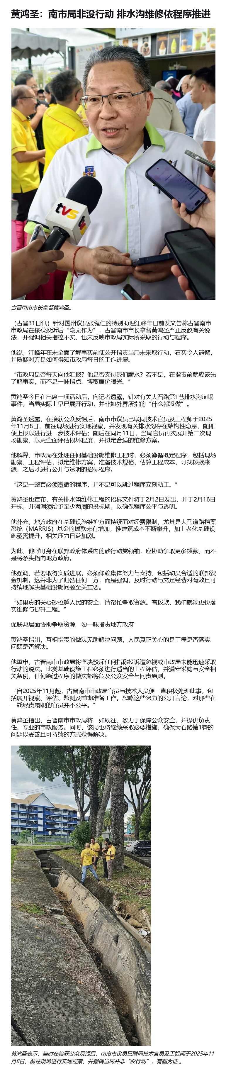 黄鸿圣:南市局非没行动 排水沟维修依程序推进