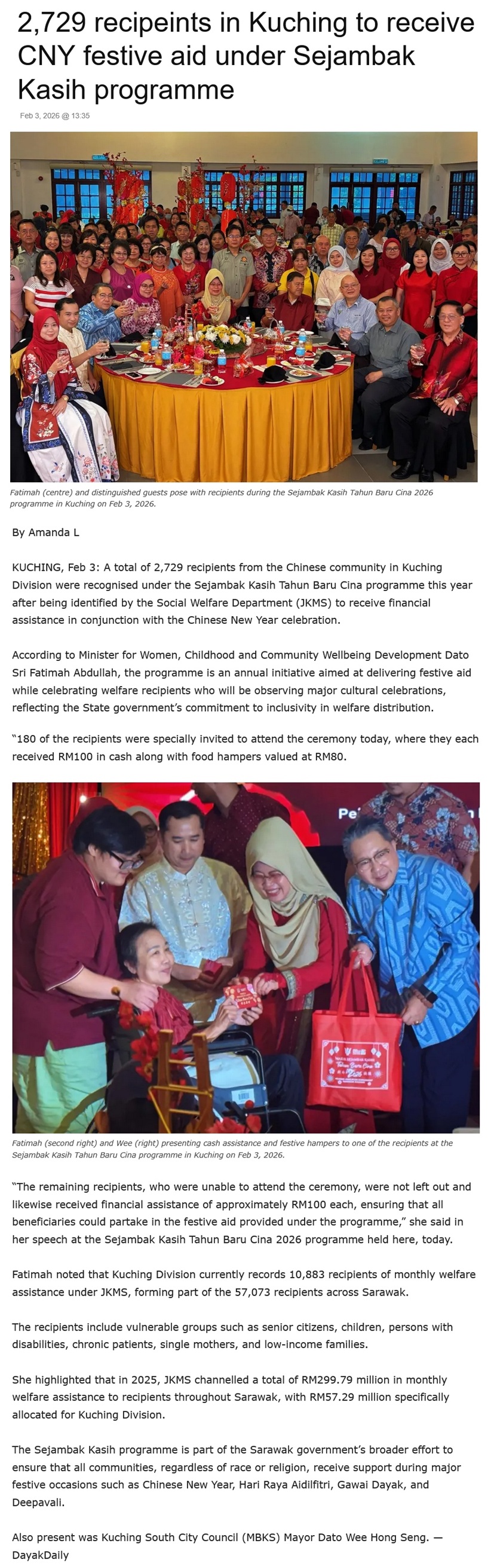 Source of News: https://dayakdaily.com/2729-recipeints-in-kuching-to-receive-cny-festive-aid-under-sejambak-kasih-programme/