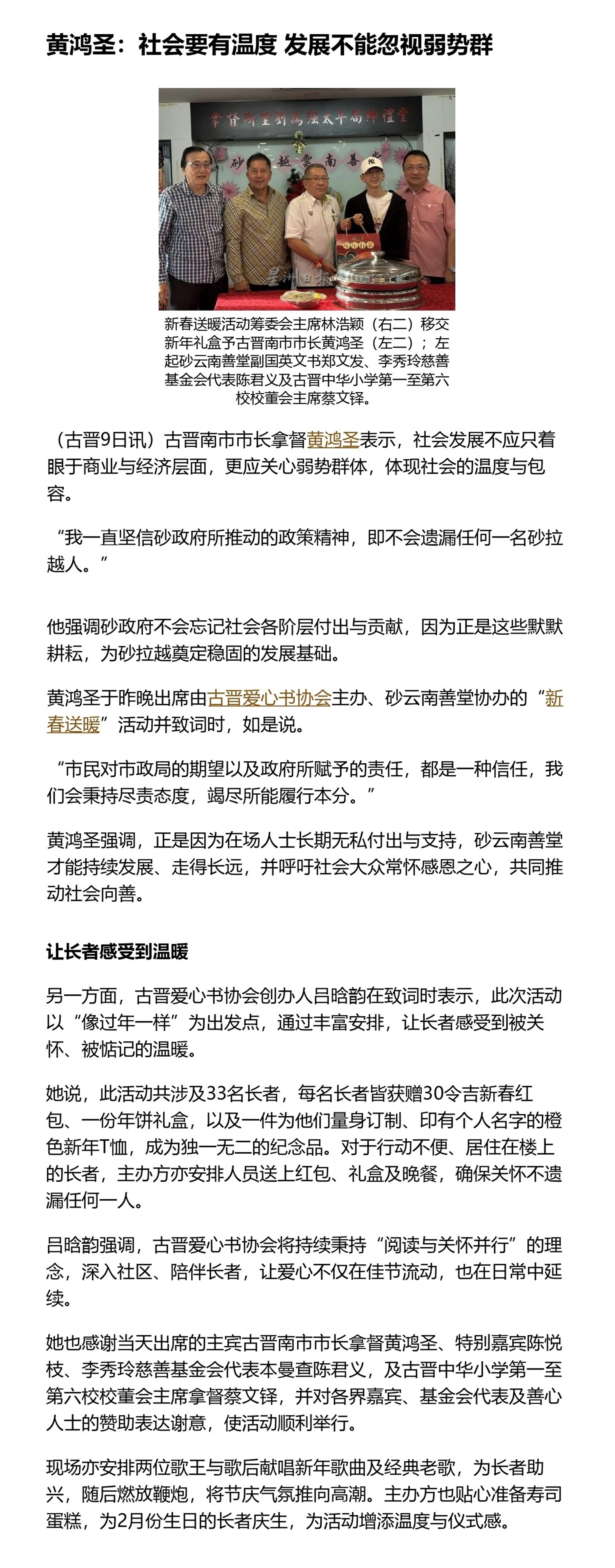 黄鸿圣: 社会要有温度 发展不能忽视弱势群