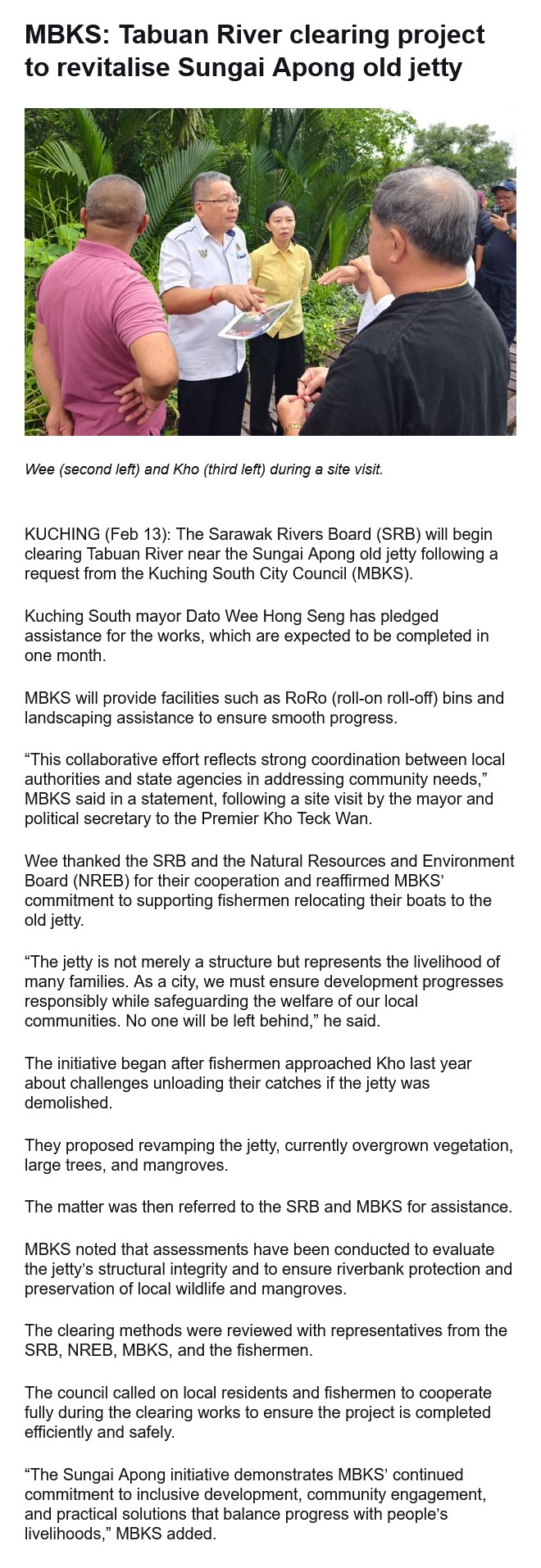 MBKS: Tabuan River clearing project to revitalise Sungai Apong old jetty