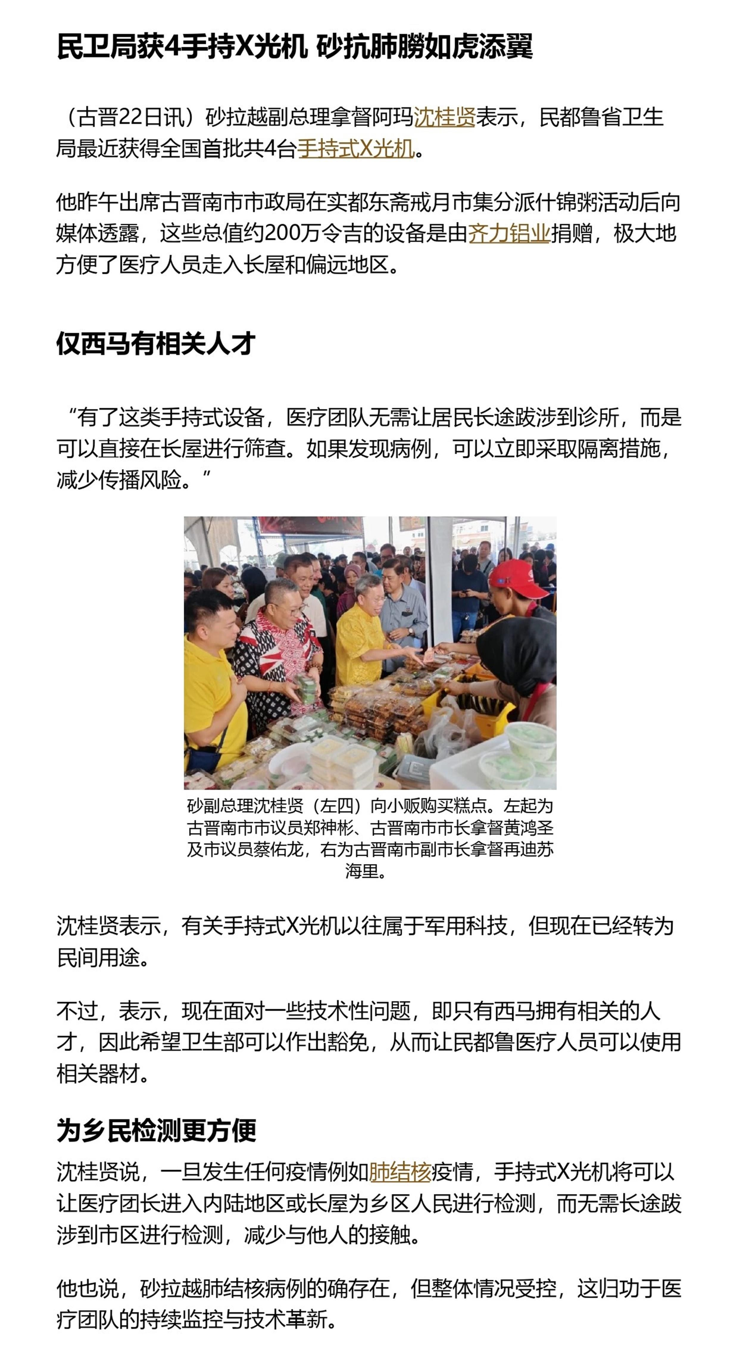 民卫局获4手持X光机 砂抗肺朥如虎添翼