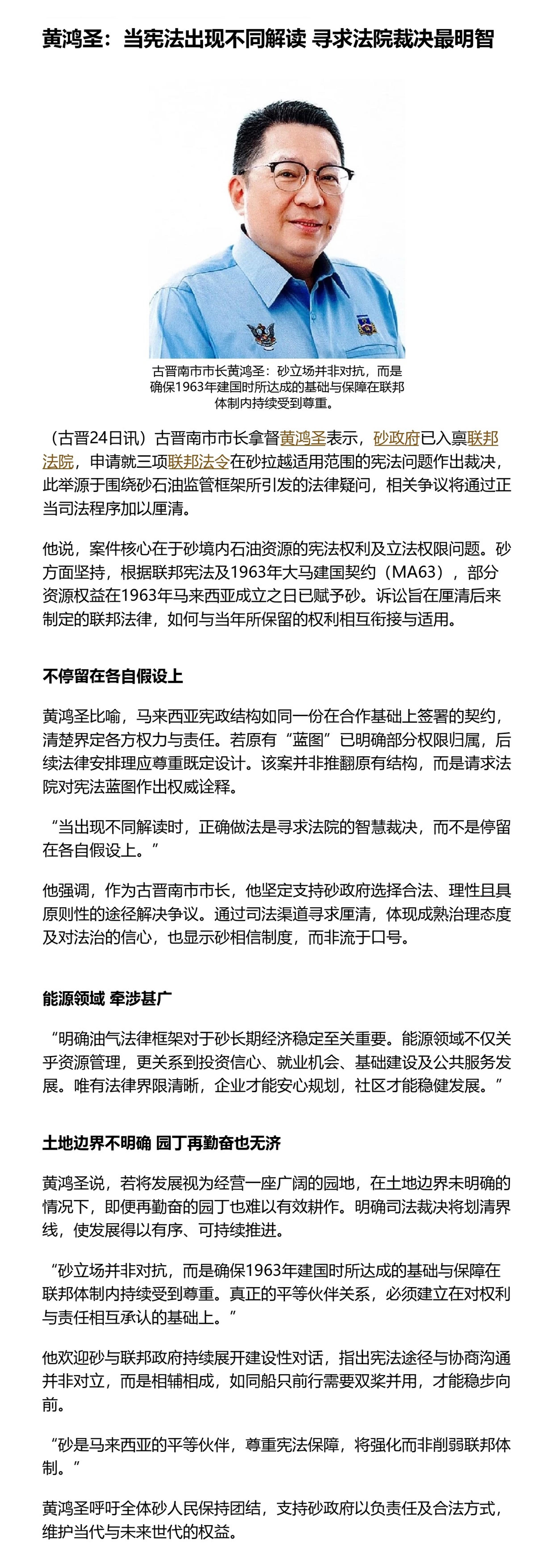 黄鸿圣:当宪法出现不同解读 寻求法院裁决最明智