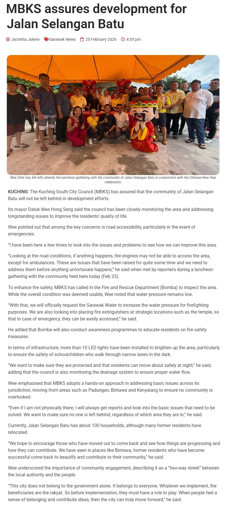 Source of News: https://www.sarawaktribune.com/mbks-assures-development-for-jalan-selangan-batu/