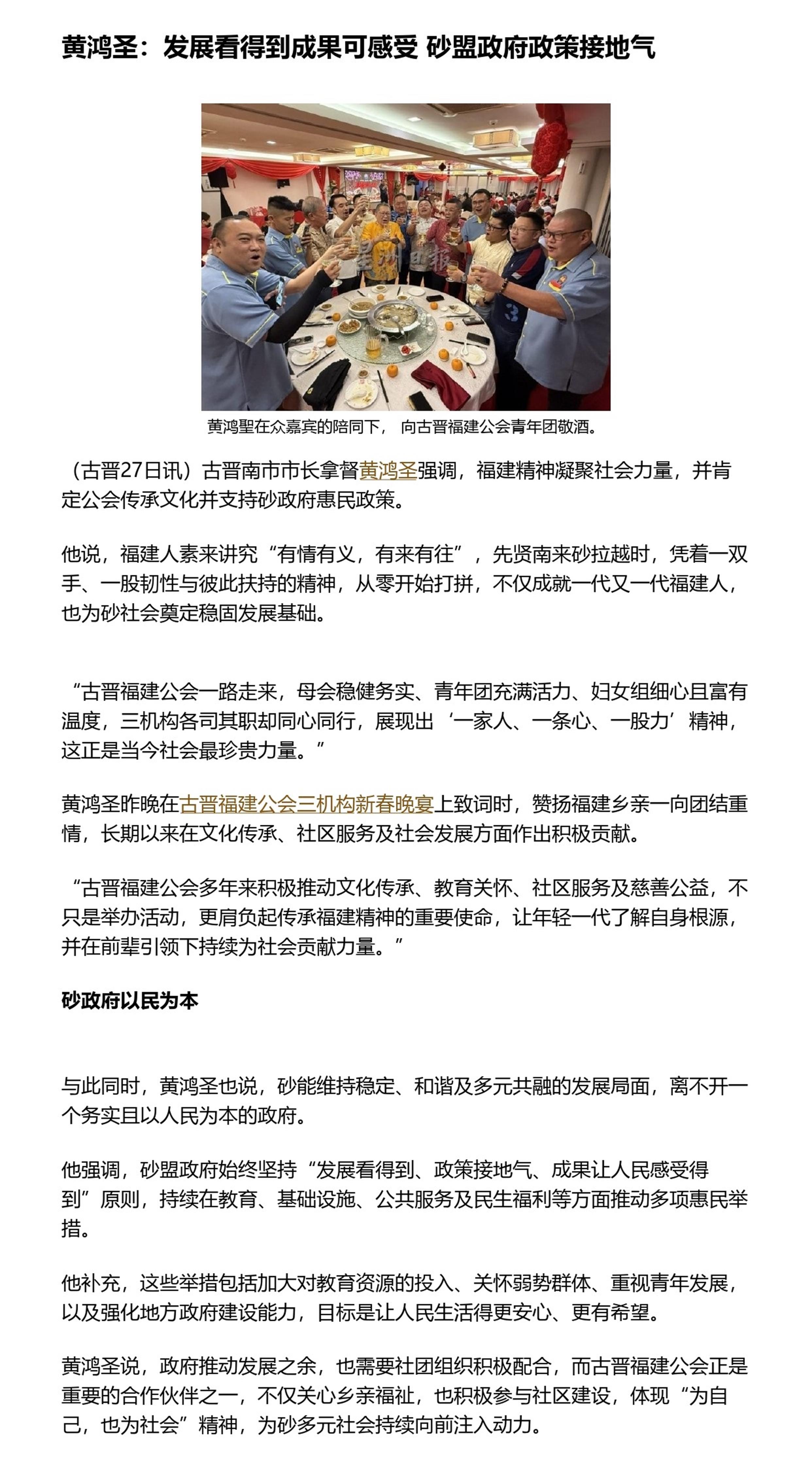 黄鸿圣:发展看得到成果可感受 砂盟政府政策接地气