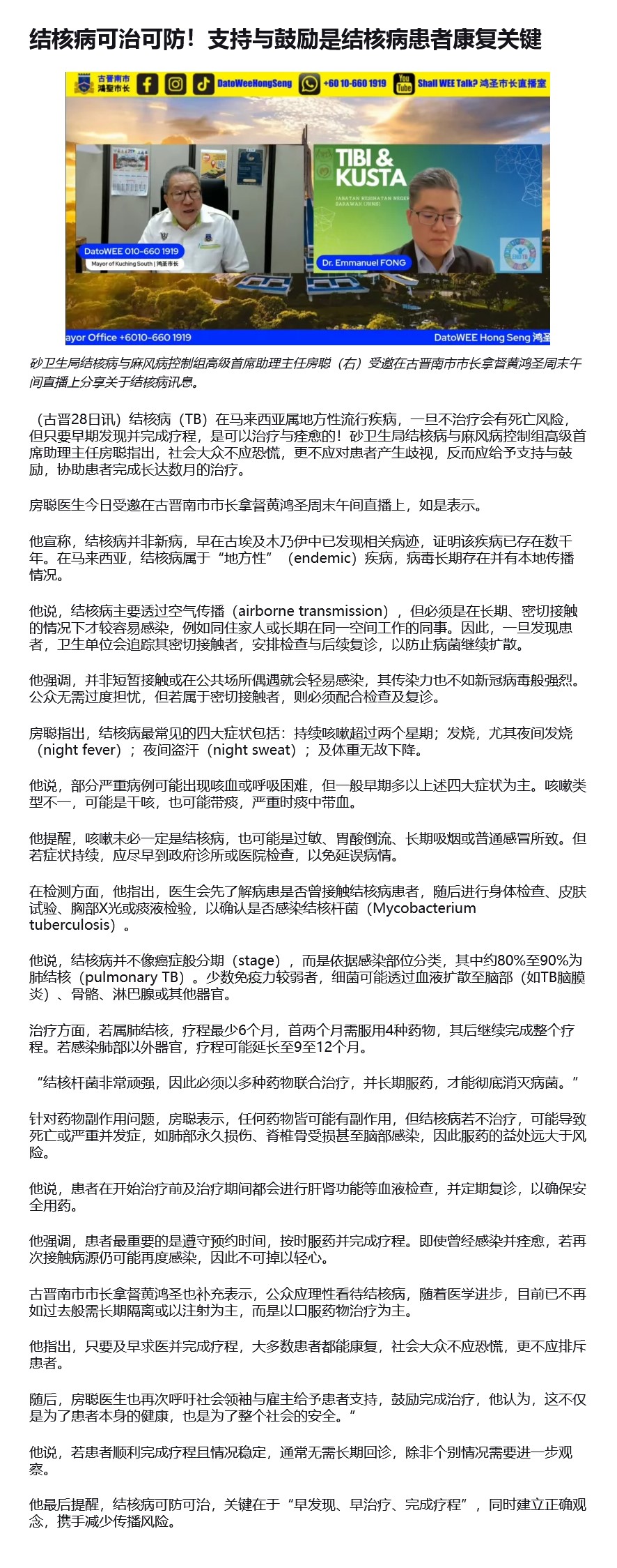 结核病可治可防!支持与鼓励是结核病患者康复关键