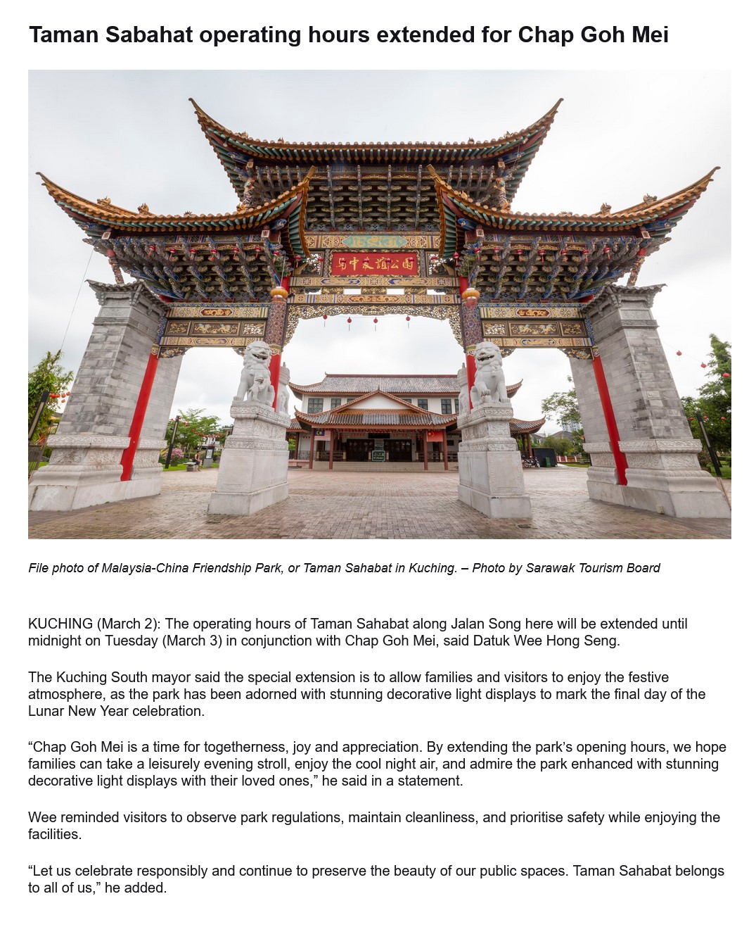 Taman Sabahat operating hours extended for Chap Goh Mei
