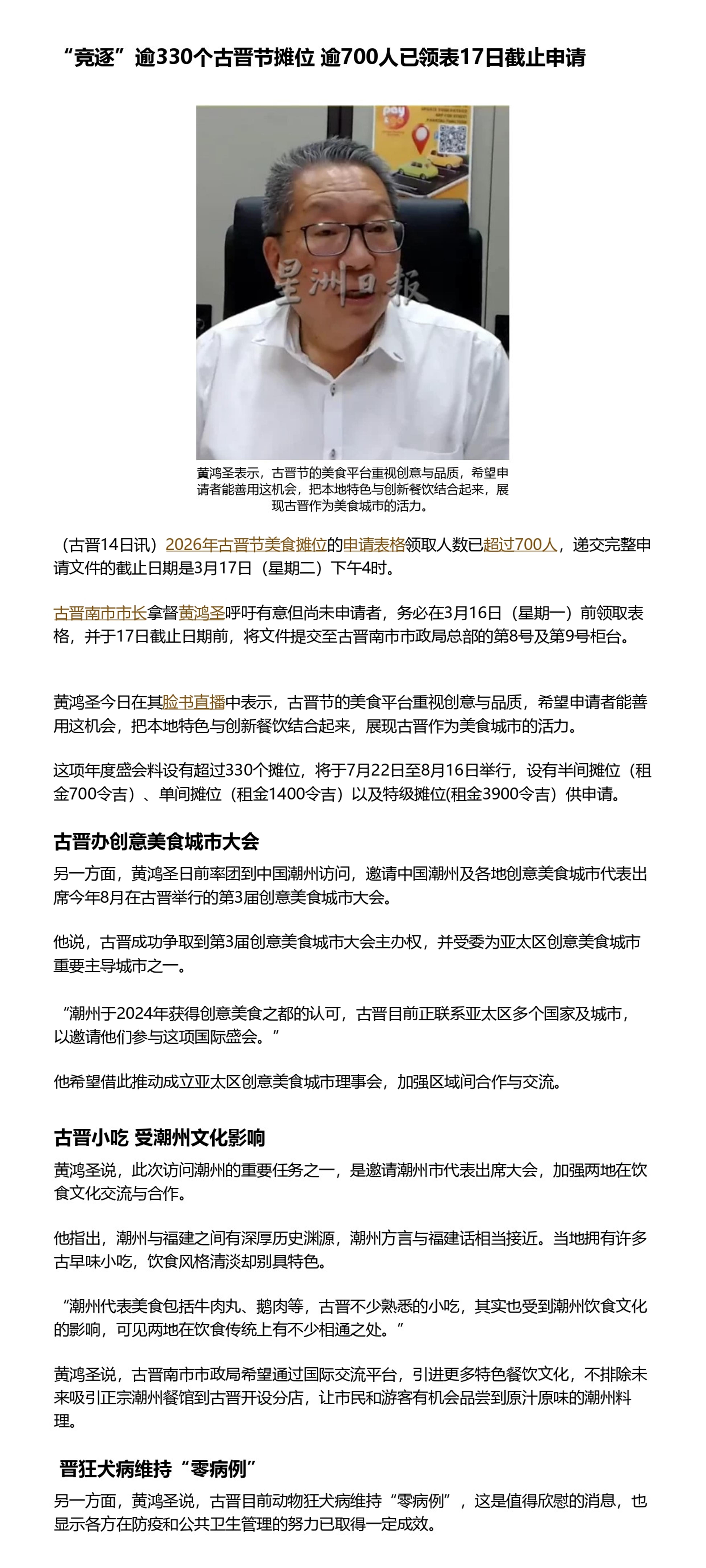 “竞逐”逾330个古晋节摊位 逾700人已领表17日截止申请