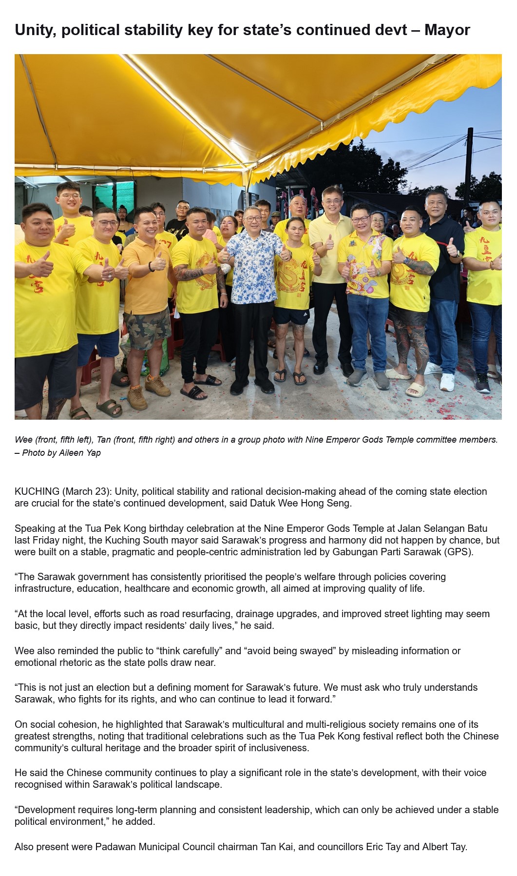 Unity, political stability key for state’s continued devt – Mayor