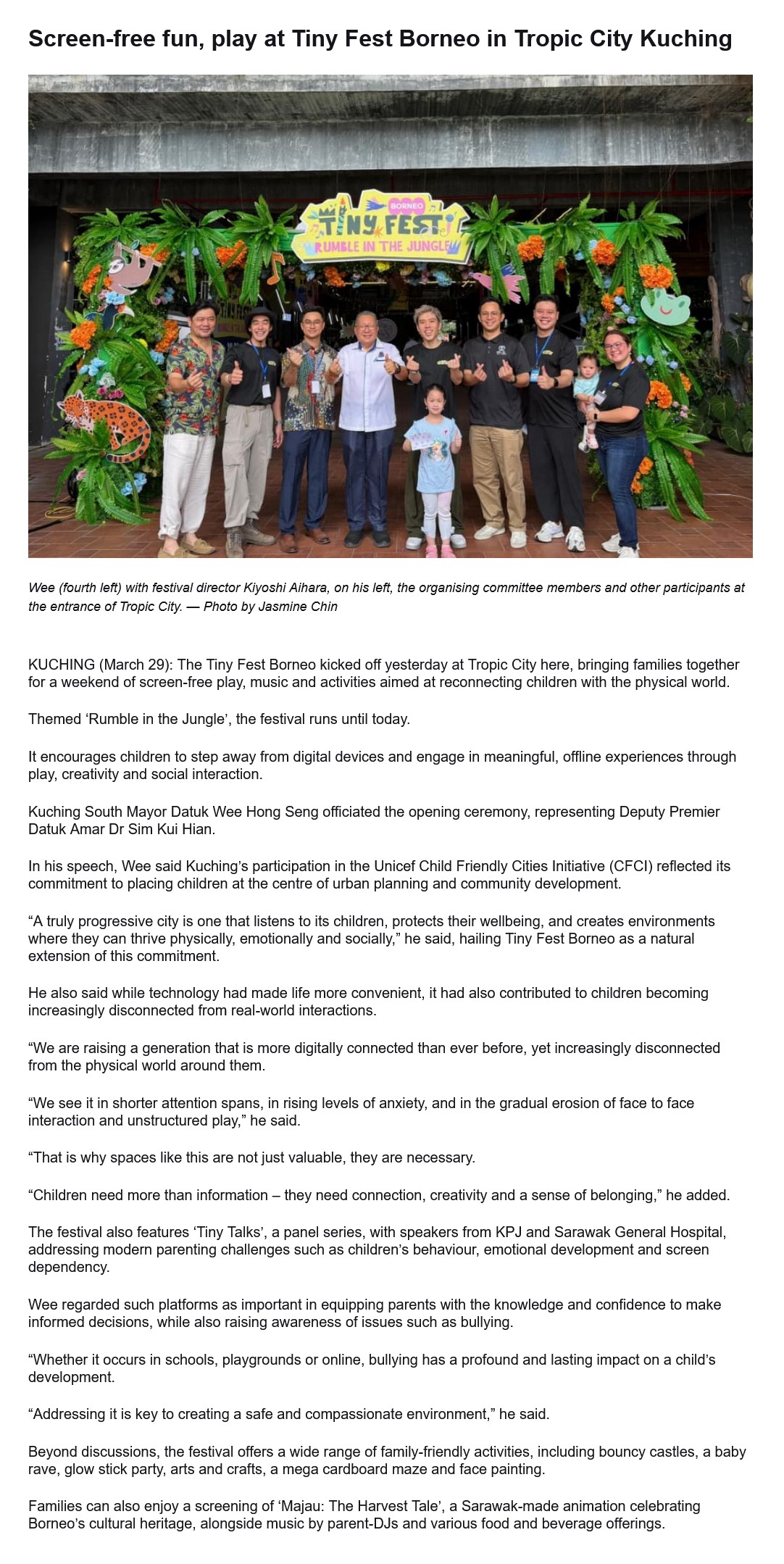 Screen-free fun, play at Tiny Fest Borneo in Tropic City Kuching