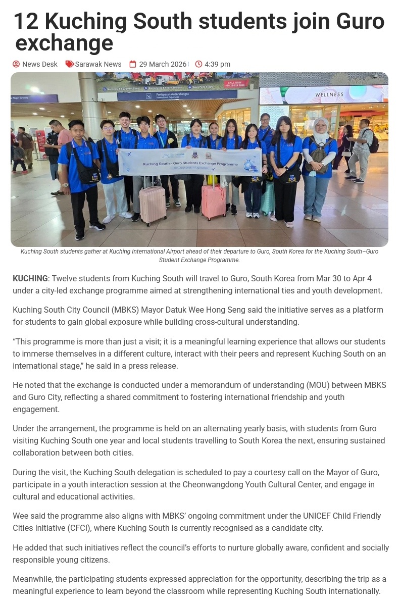 Source of News: https://www.sarawaktribune.com/12-kuching-south-students-join-guro-exchange/