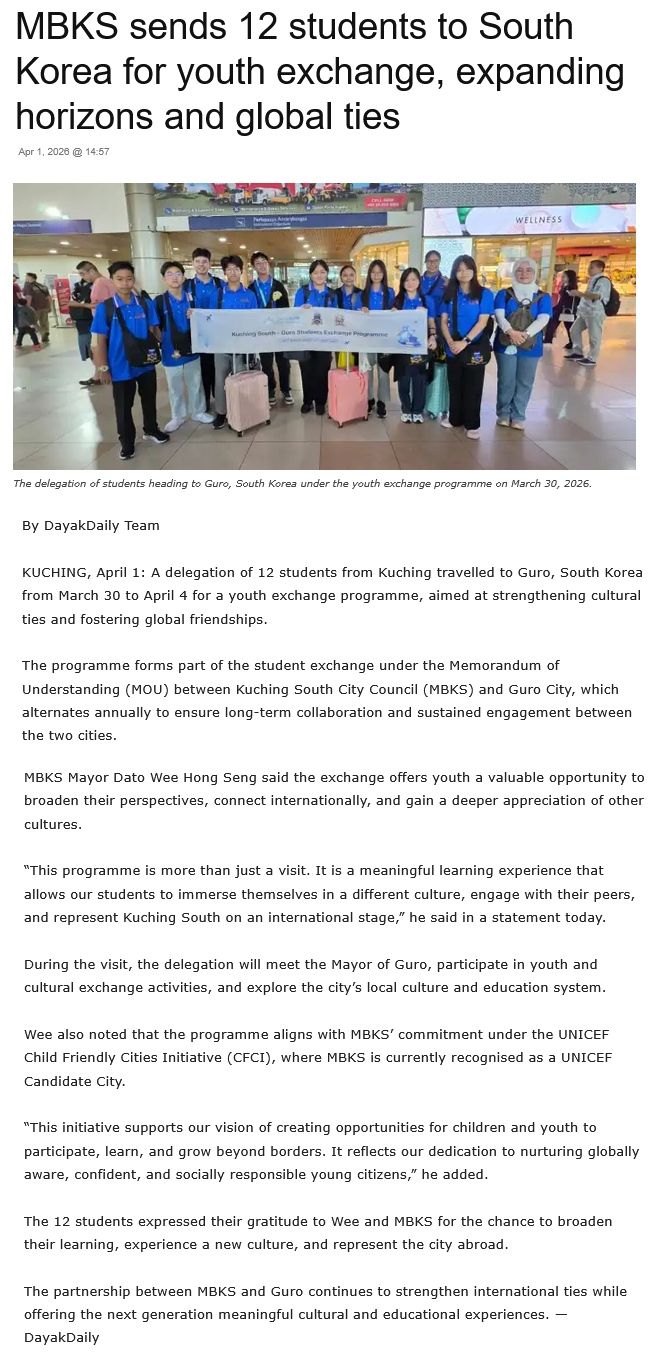 Source of News: https://dayakdaily.com/mbks-sends-12-students-to-south-korea-for-youth-exchange-expanding-horizons-and-global-ties/