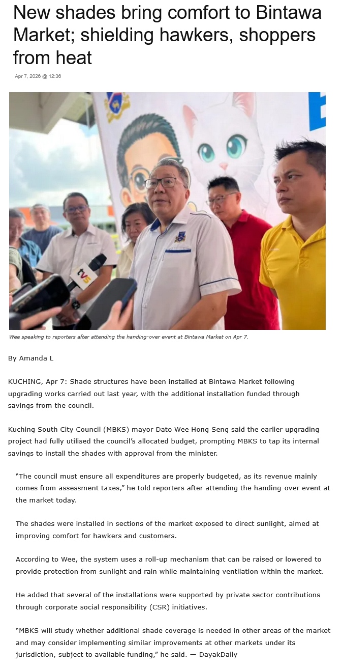 Source of News: https://dayakdaily.com/new-shades-bring-comfort-to-bintawa-market-shielding-hawkers-shoppers-from-heat/