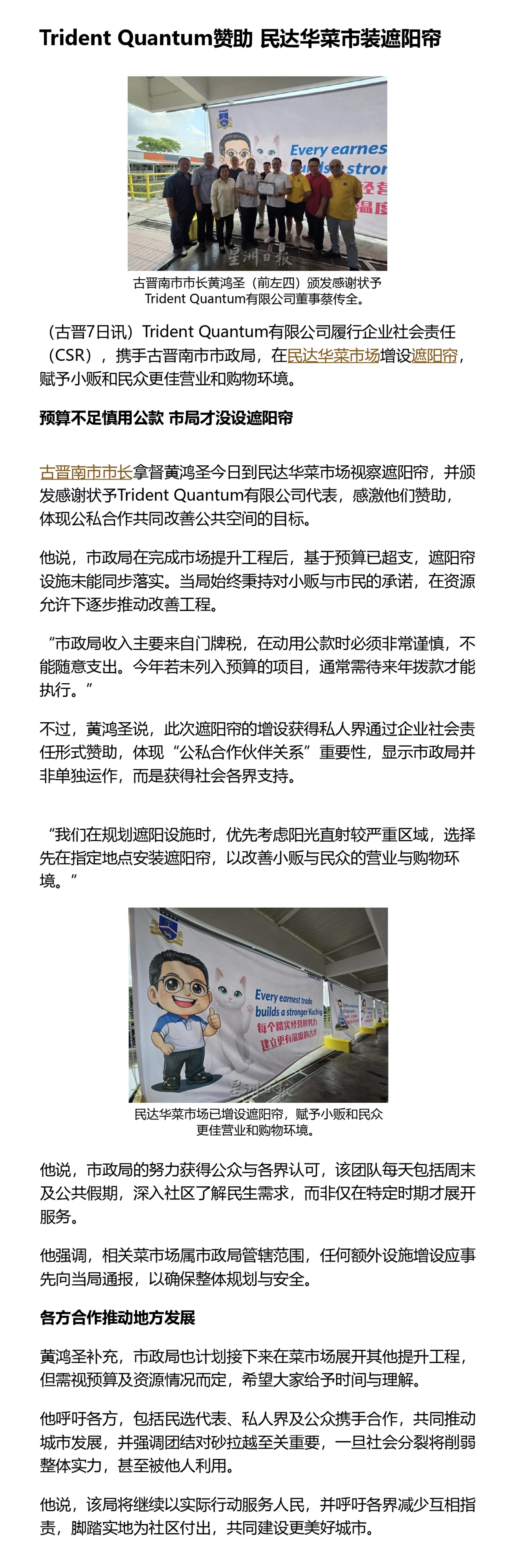 Trident Quantum赞助 民达华菜市装遮阳帘