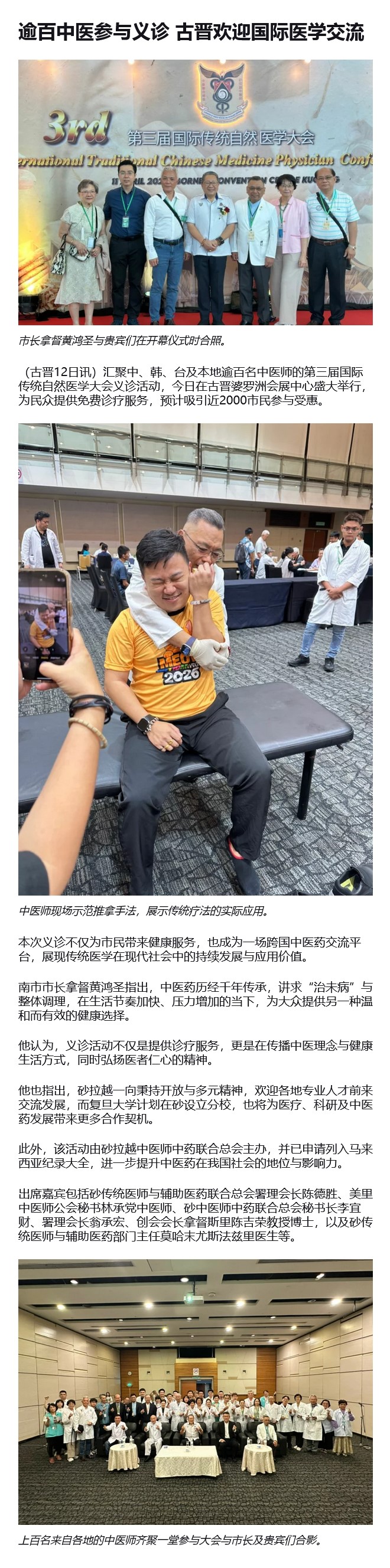 逾百中医参与义诊 古晋欢迎国际医学交流