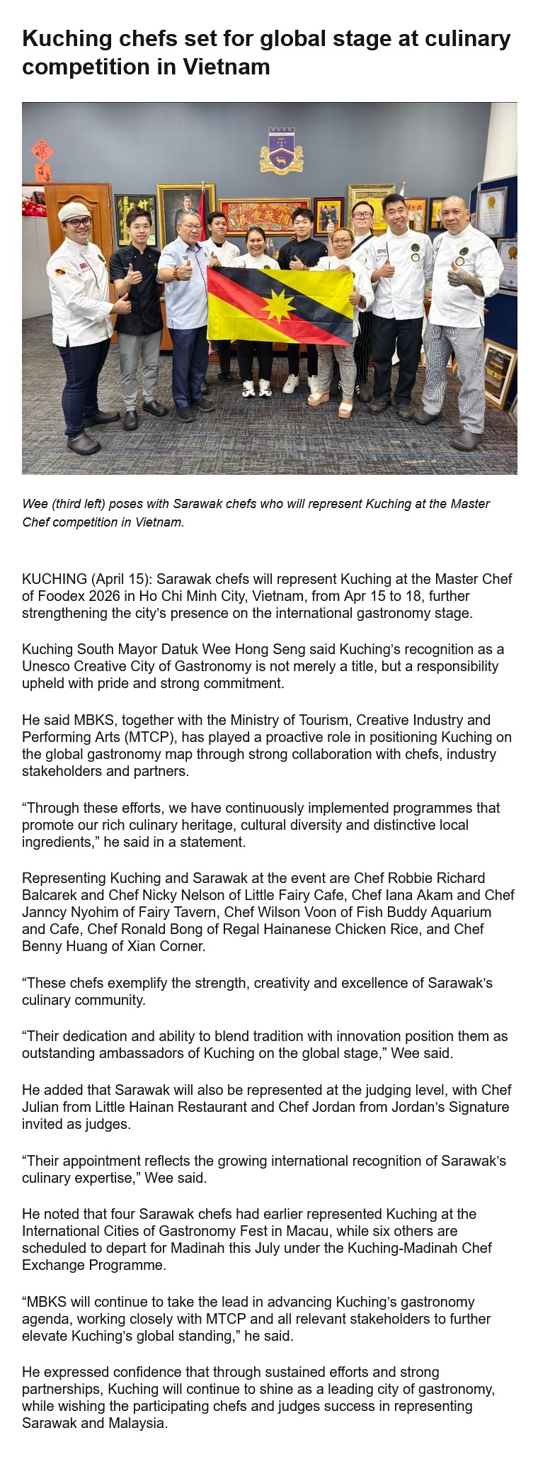 Kuching chefs set for global stage at culinary competition in Vietnam