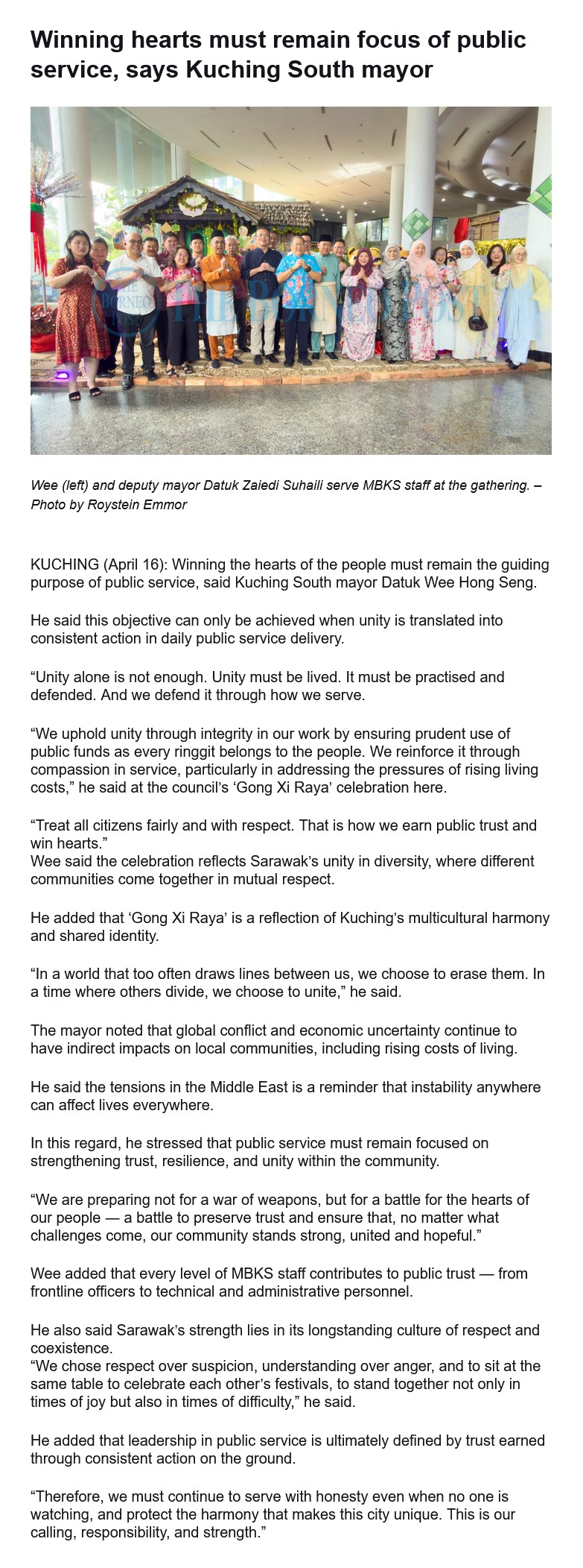 Winning hearts must remain focus of public service, says Kuching South mayor