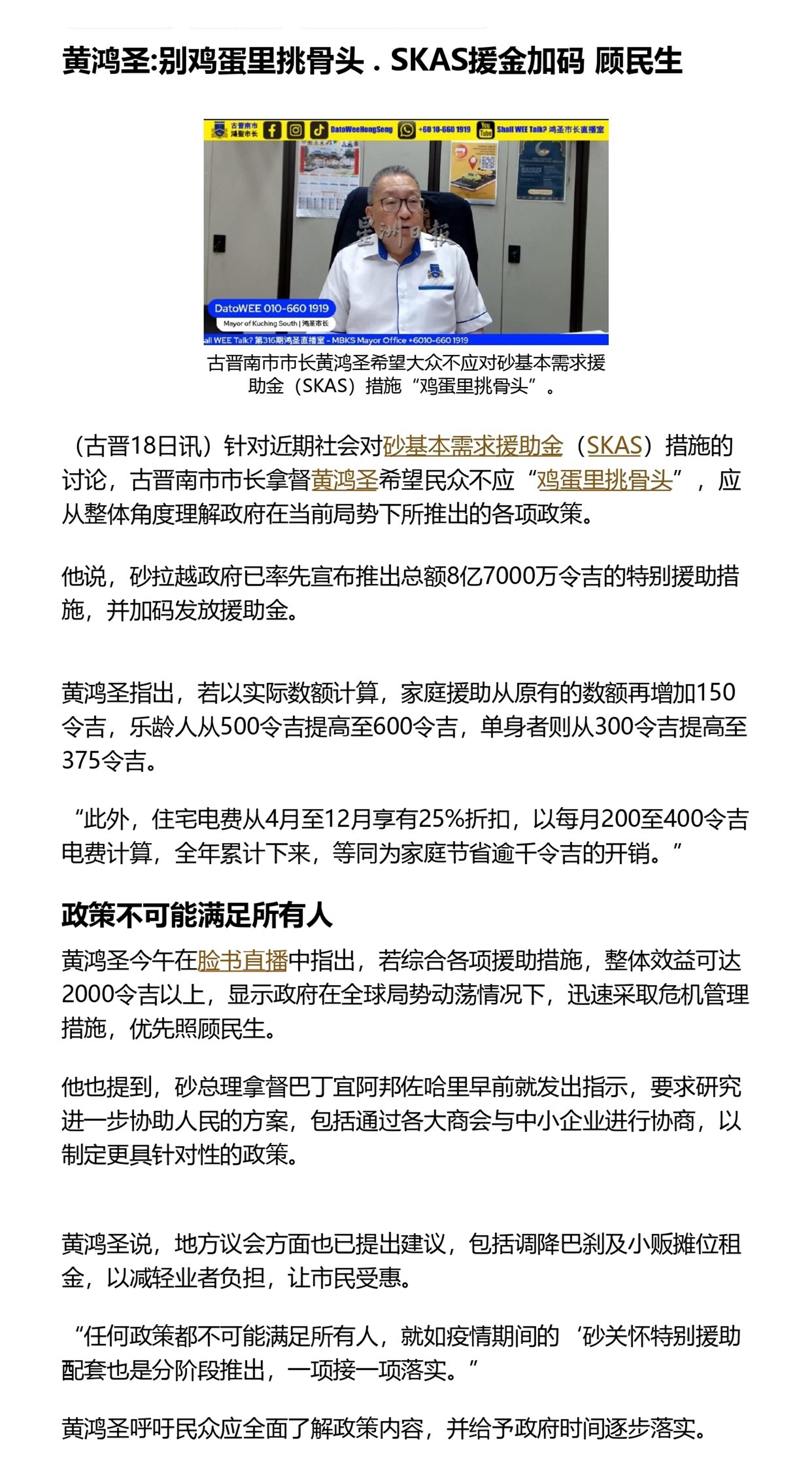 黄鸿圣: 别鸡蛋里挑骨头 . SKAS援金加码 顾民生