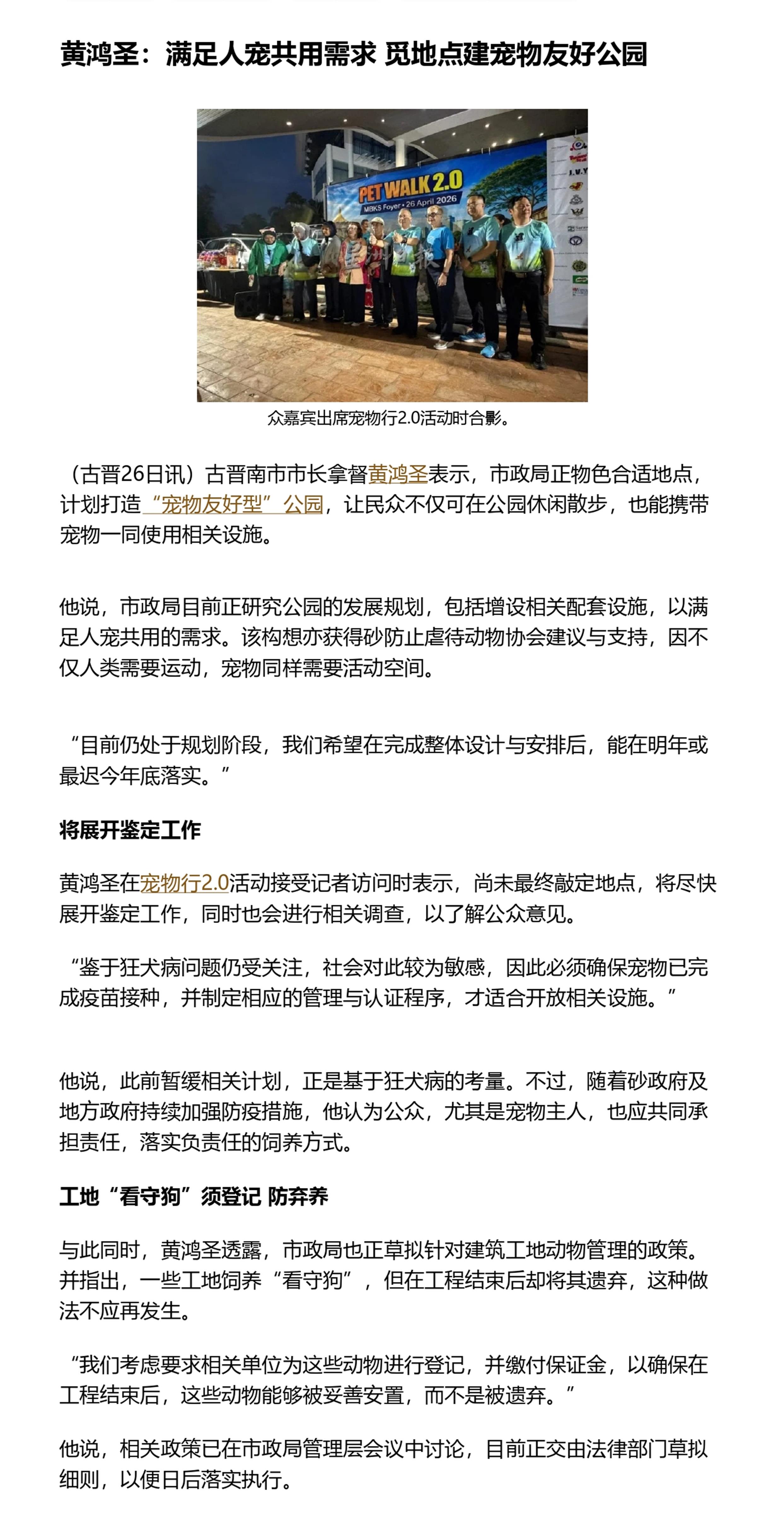 黄鸿圣: 满足人宠共用需求 觅地点建宠物友好公园
